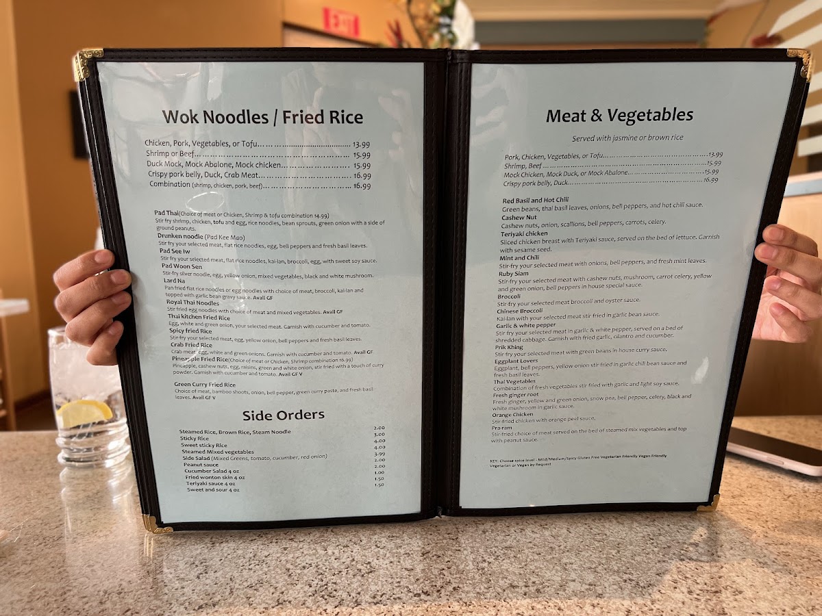- House Specialties: Don't miss the Garlic Tilapia and the sensational Barbequed Pork Ribs, both of which showcase the vibrant flavors characteristic of Thai cuisine.